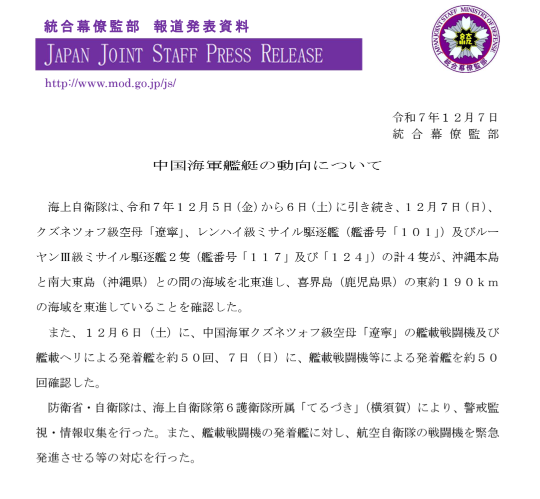 | … | 19無題Name名無し 25/12/08(月)09:20:09 IP:223.134.*(nuro.jp)No.251193+>また、自衛隊の公開した画像では護衛の052DL型が鮮明なのに対して、遼寧は望遠による揺らぎのある状態なので、空母打撃軍の警戒範囲が以前に比べて広くなっている可能性がある。 |
