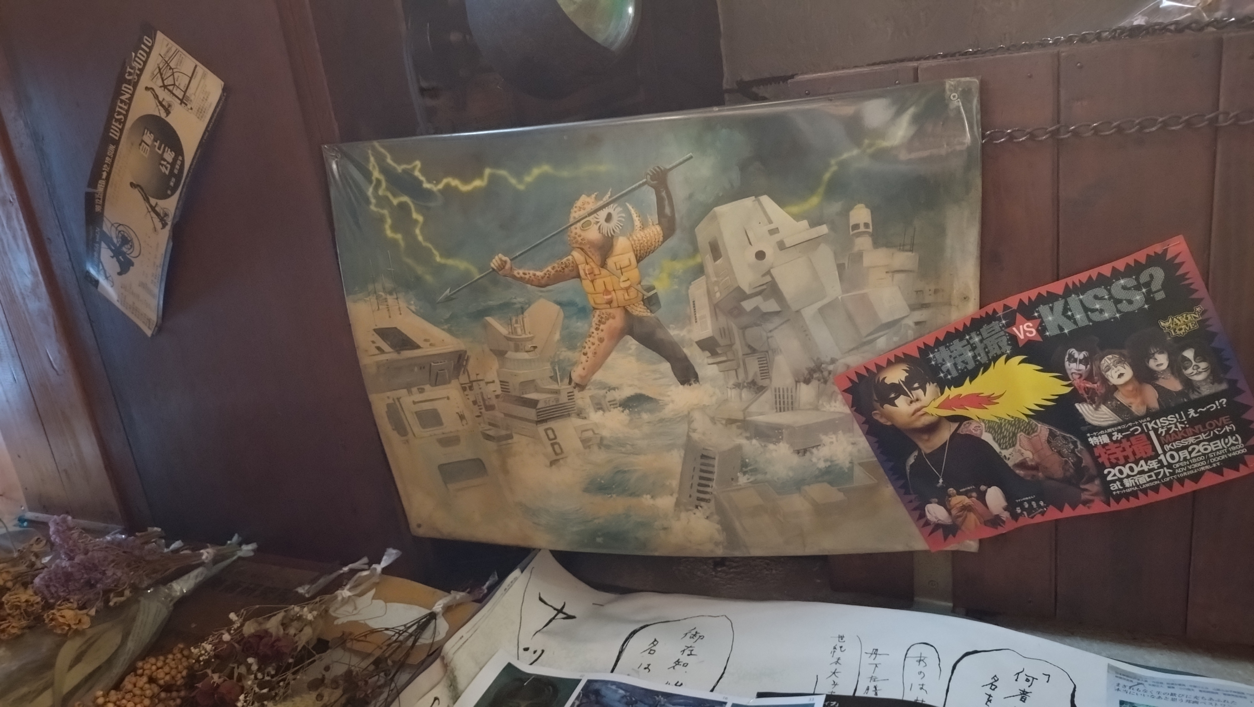 明大前駅の喫茶店『ぐずぐず』の天井に貼られている、デンジマンのデンジ星壊滅の絵