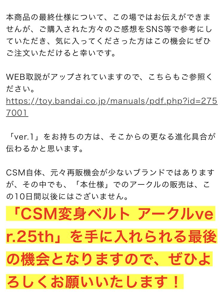 | … | 31無題Name名無し 26/02/21(土)14:37:39 IP:1.73.*(spmode.ne.jp)No.3070768そうだねx1>>アークルは当時の音源そのまま使ってるから良いけど他のCSMは俳優に新録させてるから台詞の言い回しや声質も変わってて正直違和感ある |