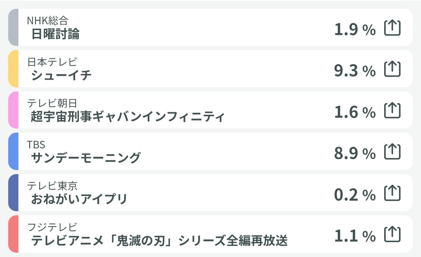 | … | 27無題Name名無し 26/04/05(日)10:27:44 IP:106.146.*(au-net.ne.jp)No.3084722+最後のほうで鬼滅が0.3%くらい越してたかな |