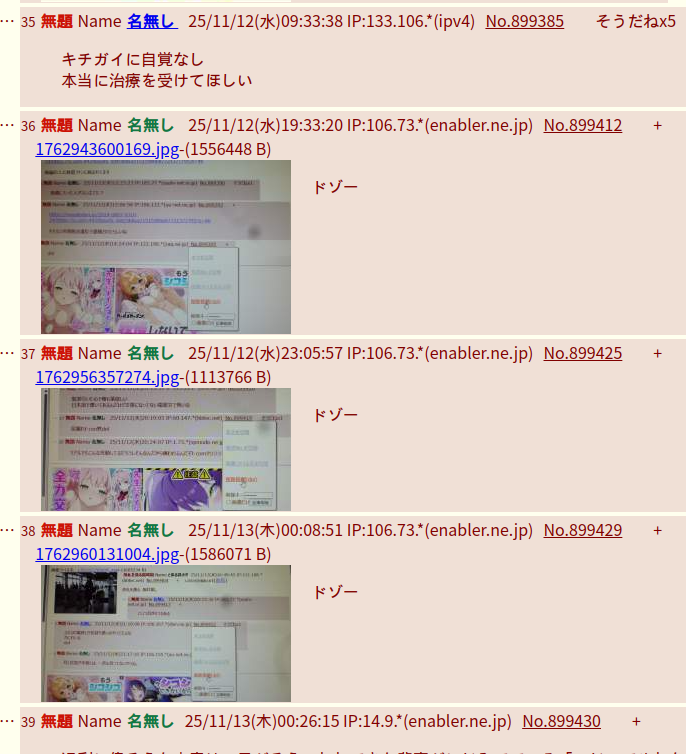 | … | 113エナブラーおじさんは、Name名無し 25/11/13(木)23:20:34No.123400+次は、どの板の、どのスレで、怒りの、100連投を、するの、カナ😅 |