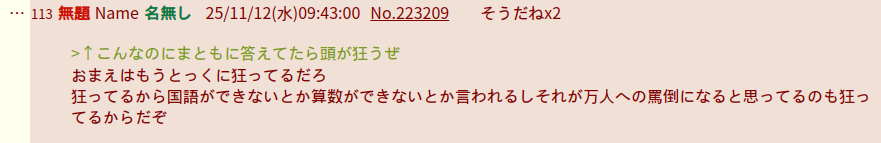 | … | 68無題Name名無し 25/11/14(金)05:09:42No.123453+人を4歳児と貶めるということは算数を理解する |