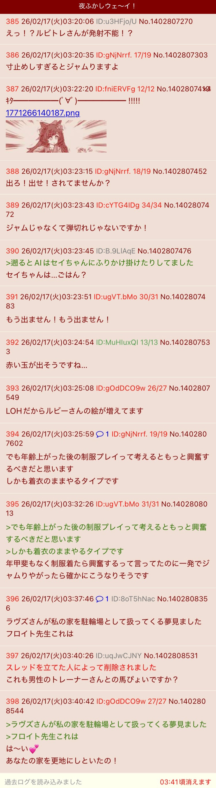 | D | fu6306947.jpeg | D4AE273A-5550-47C5-8EA8-B73F17CCA30F | 32 | 26/02/17(火)04:37 |