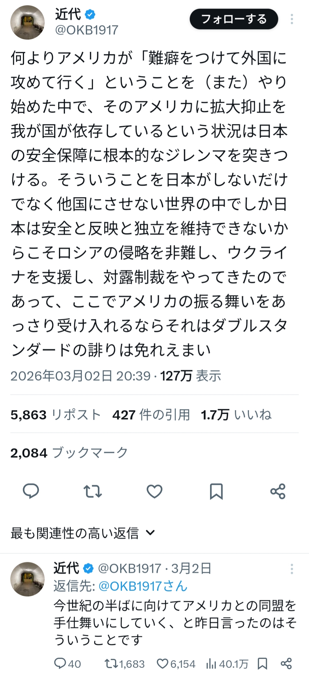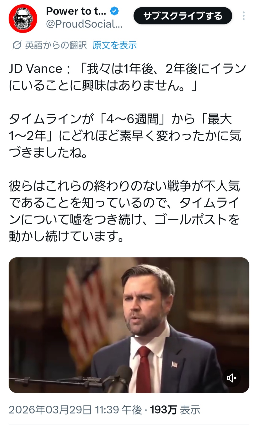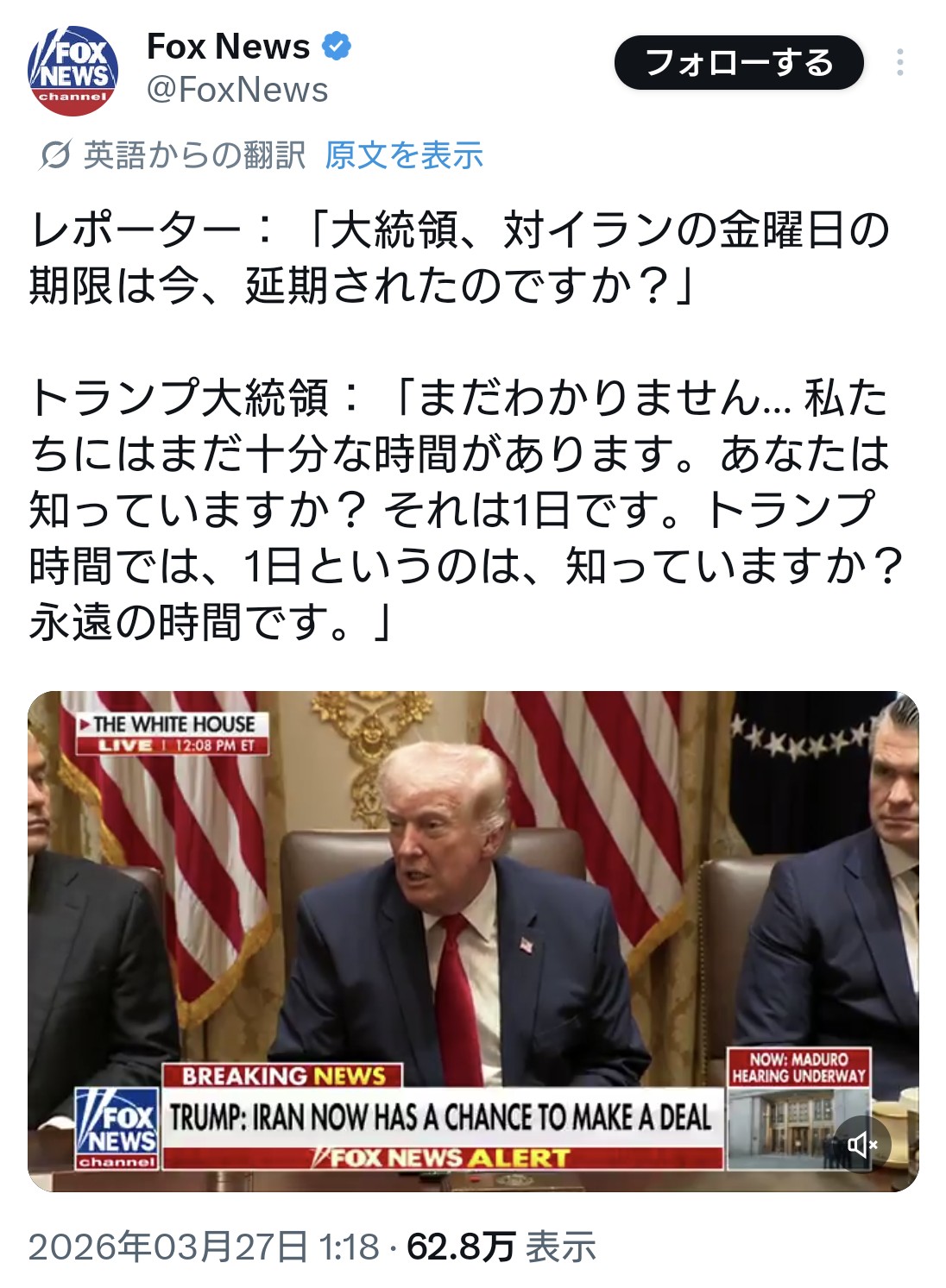 | … | 33無題Name名無し 26/03/27(金)20:30:51 IP:1.75.*(spmode.ne.jp)No.258945そうだねx1最低の大統領には違いないがパワーバランスはそんなに変わらんだろうね |