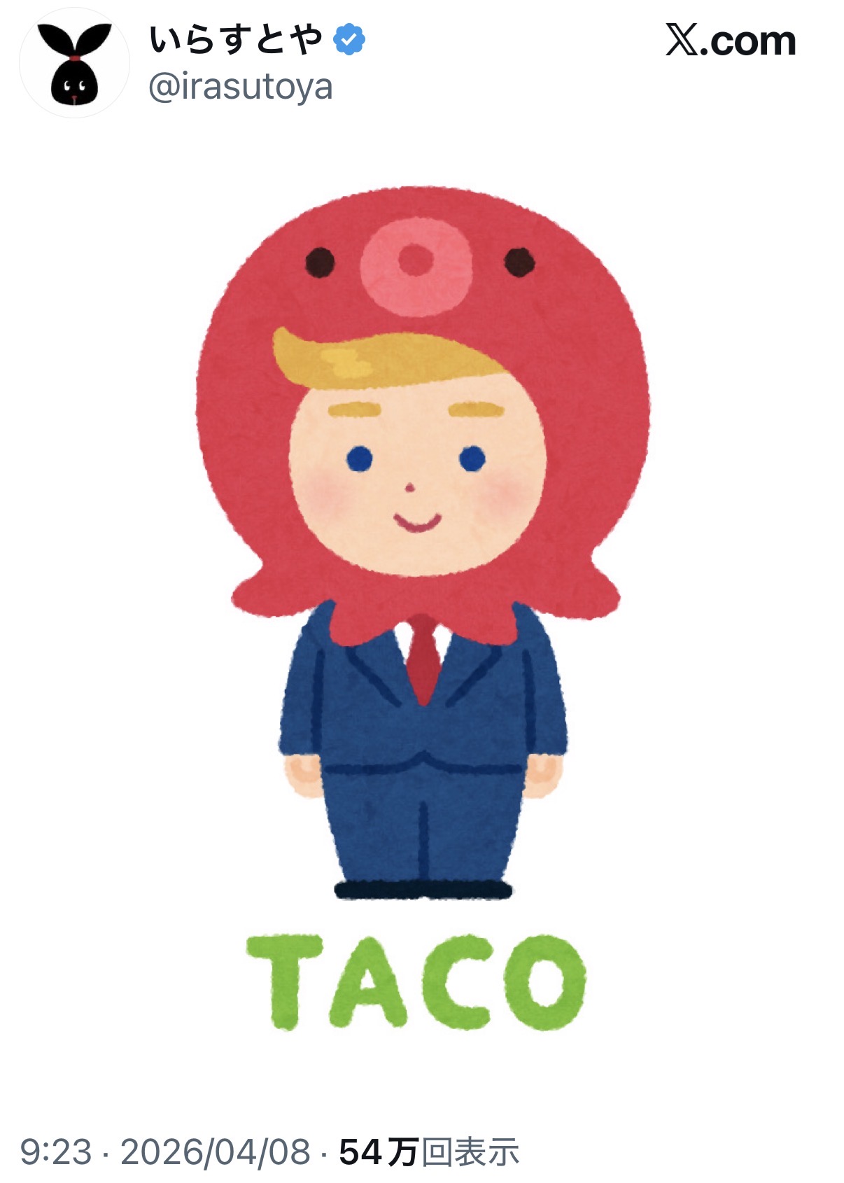 | … | 762無題Name名無し 26/04/08(水)12:24:53 IP:27.253.*(bmobile.ne.jp)No.260230そうだねx9トランプがTACOって逃げ出すのは初めから分かってたこと |