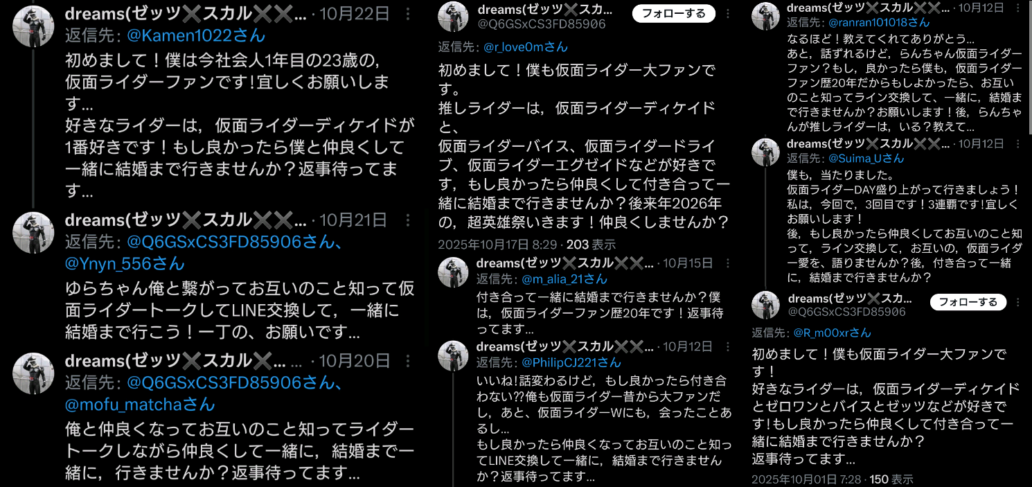 | … | 7無題Name名無し 25/11/04(火)14:59:08 IP:180.220.*(zaq.ne.jp)No.3034371そうだねx2仮面ライダーアイコンの人ってヤバい人が多い気がする |