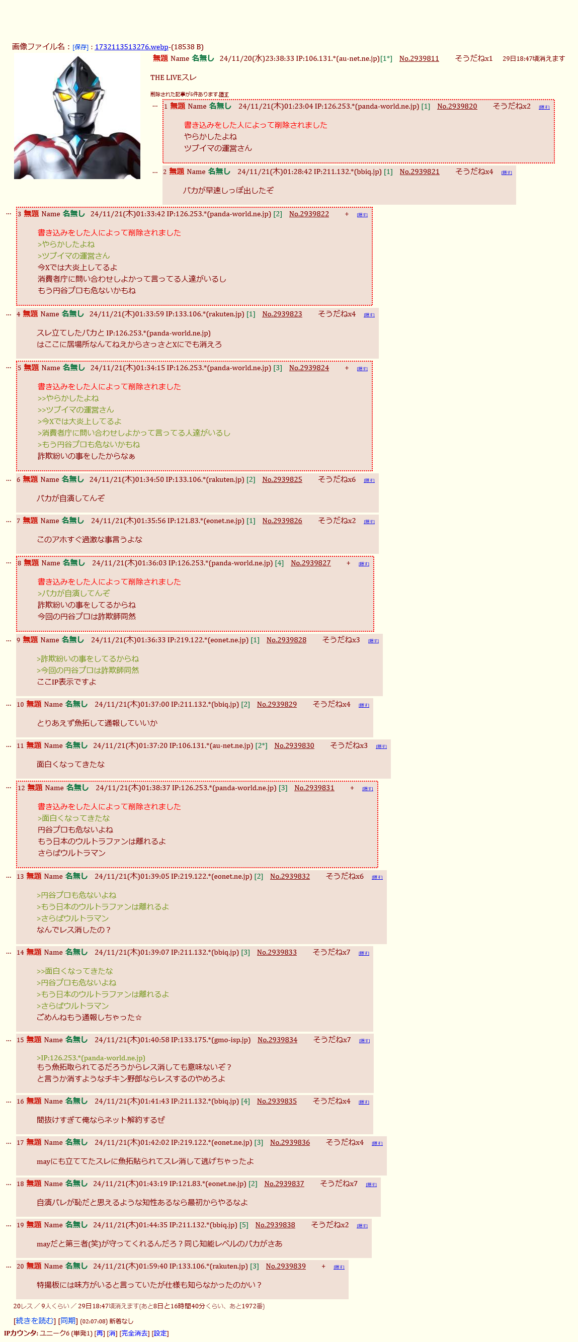 | … | 30無題Name名無し 25/12/16(火)14:18:12 IP:126.254.*(panda-world.ne.jp)No.3048732+円谷から要らない子つるの |