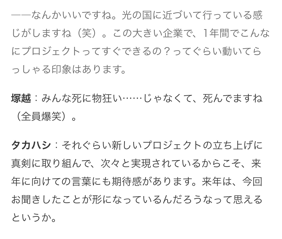 | … | 37無題Name名無し 26/02/18(水)20:47:20 IP:126.254.*(openmobile.ne.jp)No.3069926そうだねx3 1771415240619.jpg-(199620 B) 元々初期塚越体制の頃からプロジェクト多すぎて社員全員死に物狂いというよりしんでますねー(爆笑)と笑い話にするレベルで忙しかった |