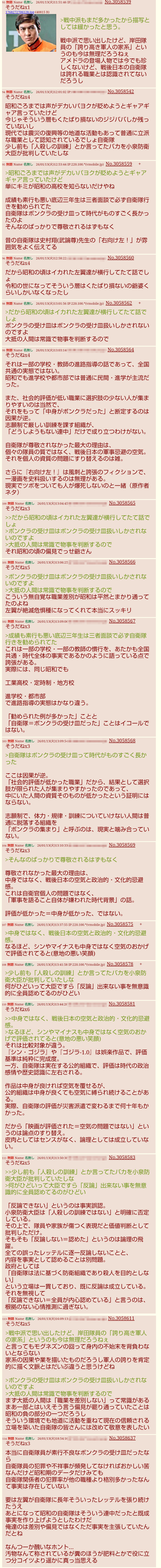 | … | 83無題Name名無し 26/03/08(日)23:29:10 IP:36.241.*(bbtec.net)No.3076076そうだねx6ふたばは化石みたいなネトウヨ多いよな |