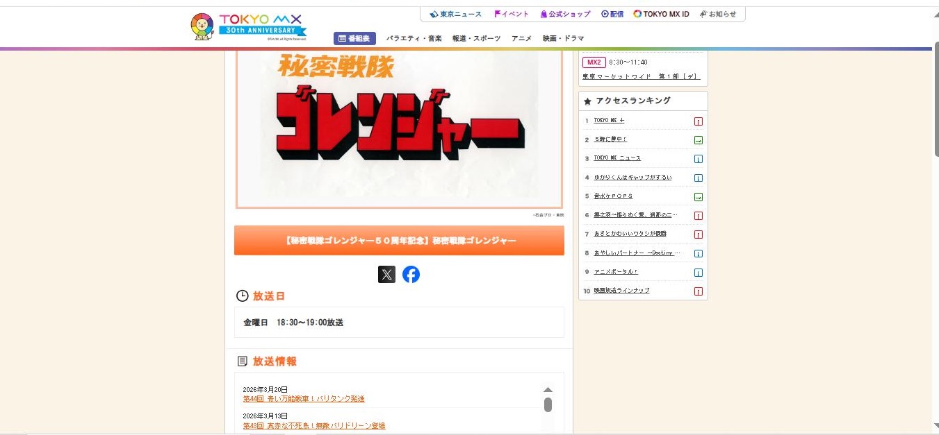 「ゴジュウジャー」がCSテレ朝チャンネルでは再放送されないようで……削除された記事が11件あります.見る