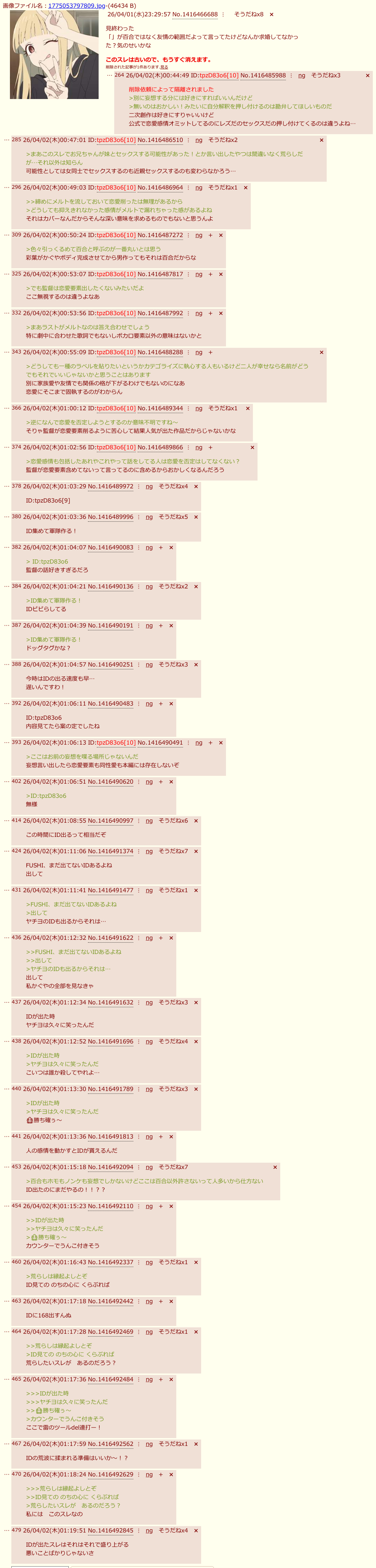 | D | fu6501489.jpeg | 3a3e98e72290aa2603fc96d57e03e713 | 312 | 26/04/03(金)14:24 |